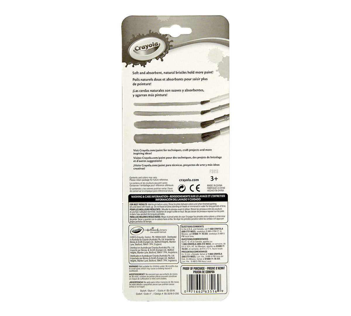 Round out the paint supplies with this Paint Brush Set which features 8 Paint Brushes in 4 different handle and brush tip sizes (1 Extra Large, 2 Large, 3 Medium, and 2 Small). Paint school projects, DIY crafts, and other arts and crafts with Crayola Paintbrushes. This Set of Paint Brushes creates both big, broad strokes and fine lines.