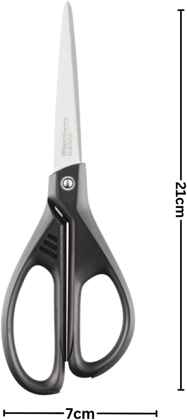 Maped Office essentials 21cm scissors. Handles made from 70% recycled plastic Maped Office has a selection of design-led and innovative products, combined with functionally. Each year more than 30 million scissors and 10 million staplers and hole punches are manufactured in our factories and tested in our quality testing Labs to ensure high performance and durability.